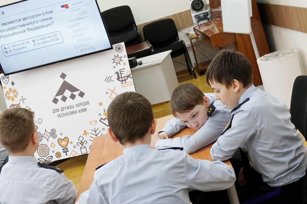 4 марта для учащихся кадетского класса одной из школ города Сыктывкара прошла интеллектуальная игра-квиз «Единство многообразия», приуроченная к Году единства народов России, объявленному Президентом России в 2026 году.