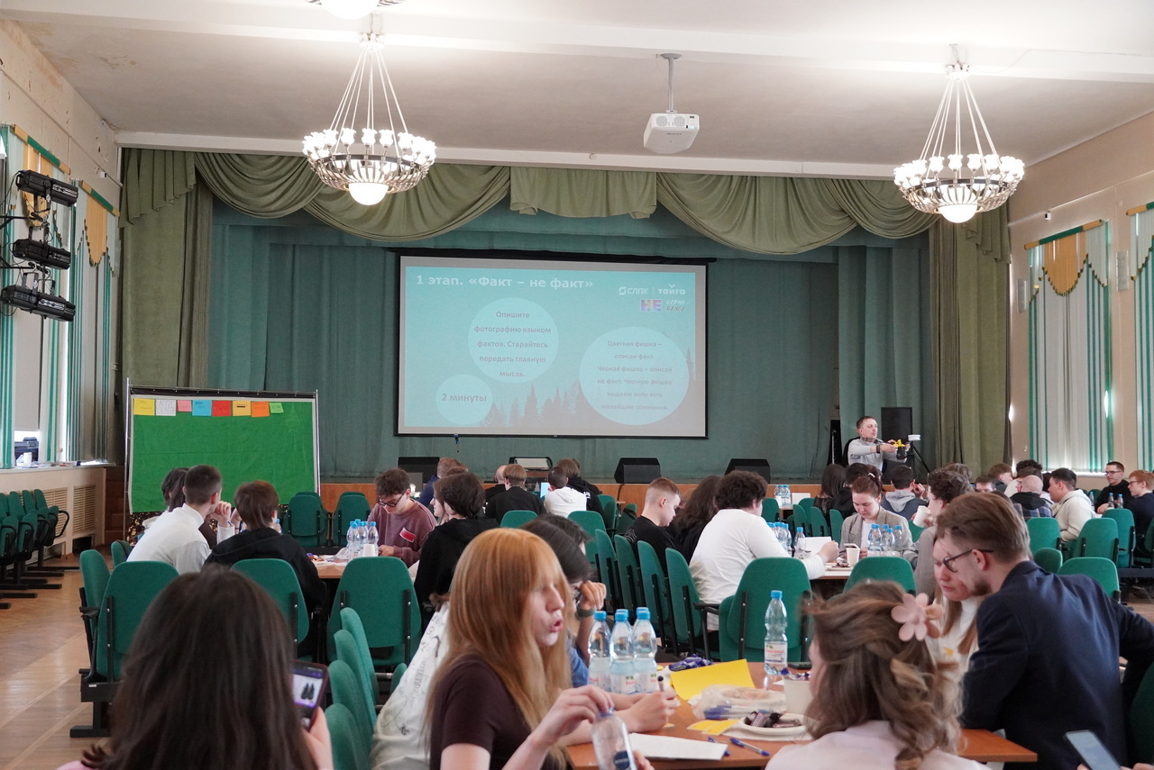 Центральным событием первого дня стала деловая игра «Не черно-белое», которую провела бизнес-тренер Евгения Фролова. Восемь студенческих команд учились отделять факты от интерпретаций и эмоциональных суждений — навык, который сегодня критически важен в условиях информационного шума. По условиям одного из заданий участники описывали реальные фотографии с комбината, а соперники должны были определить, где в описании звучит измеримый факт, а где — субъективное мнение. Как отметила ведущая, «факт — это то, что можно констатировать и измерить, остальное может быть домыслами». Игровая форма позволила студентам не только прокачать аналитическое мышление, но и в неформальной обстановке погрузиться в производственную среду Сыктывкарского ЛПК.