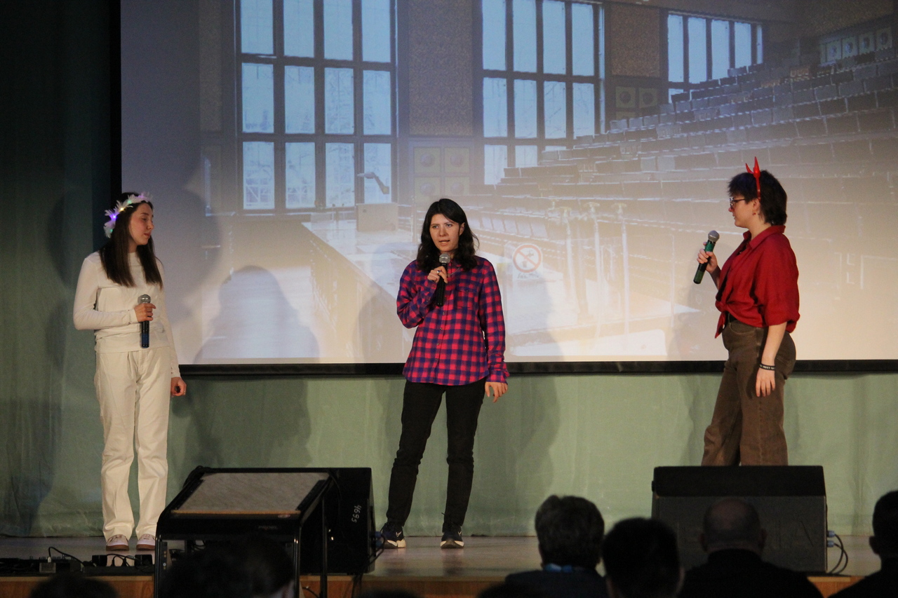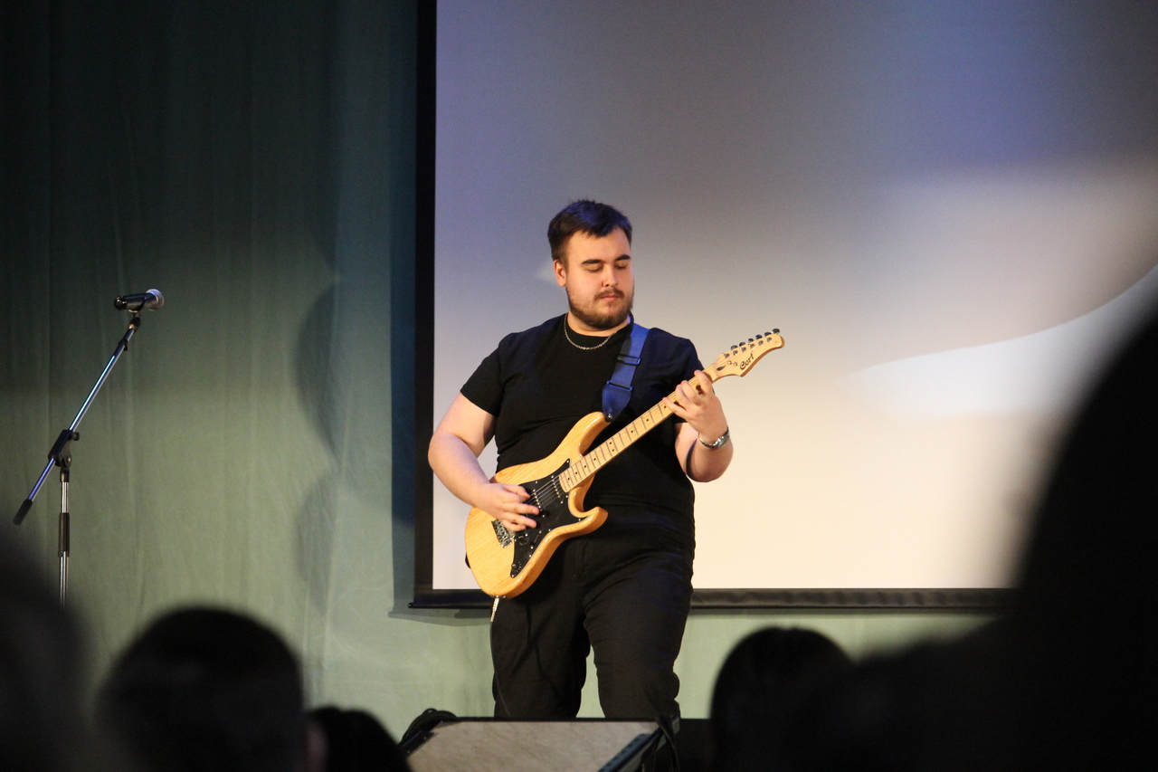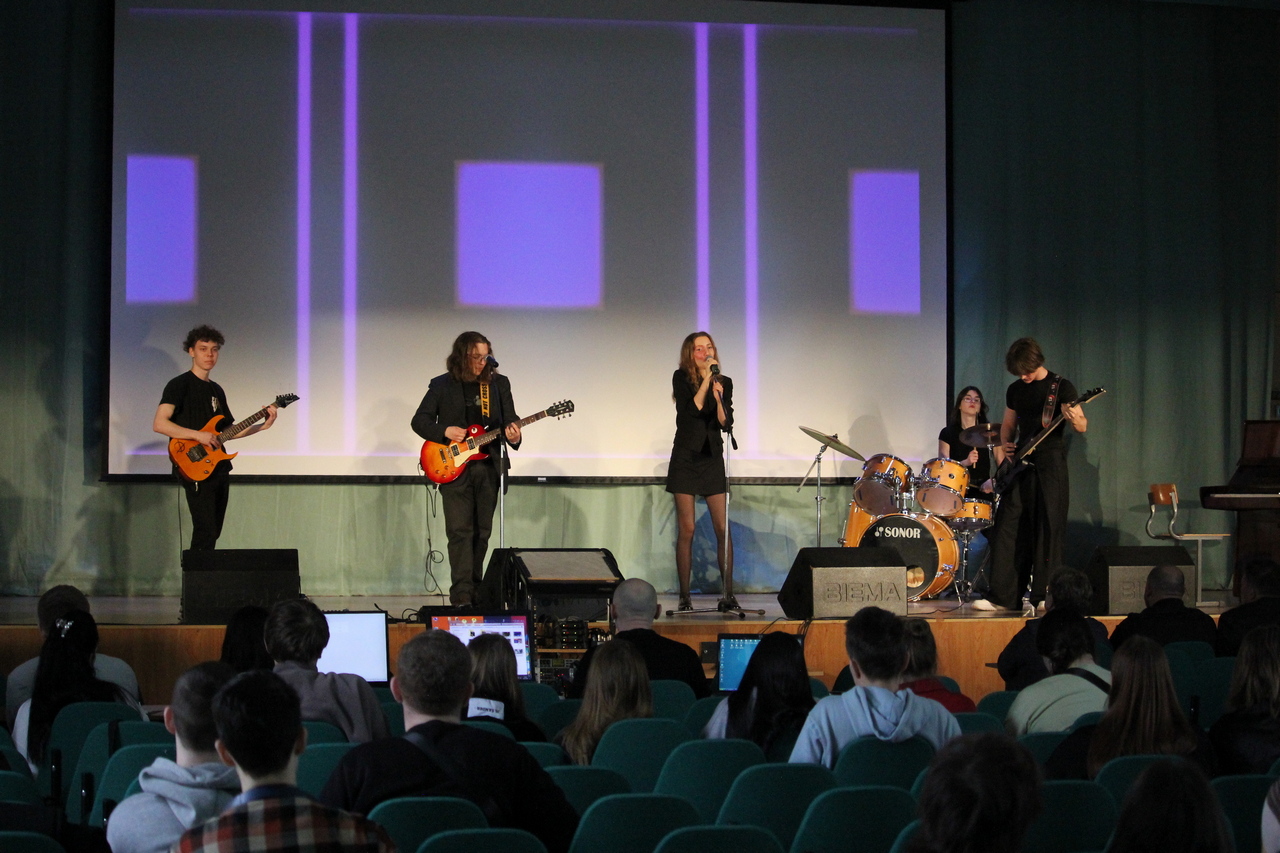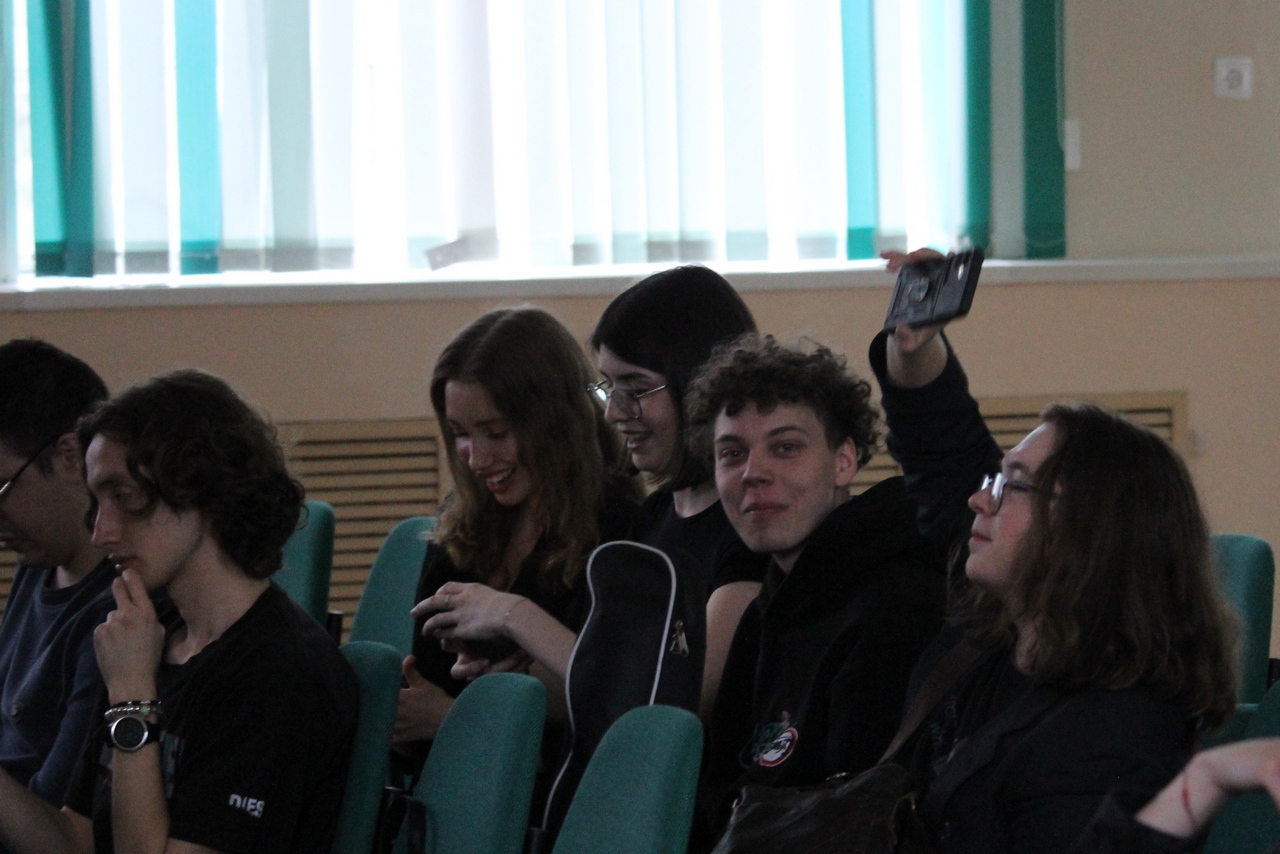 Концерт превратился в настоящий калейдоскоп жанров: проникновенные бардовские песни под гитару звучали так искренне, будто мы собрались у костра, только на большой сцене; юмористические постановки — о нас, о студентах, о бессонных ночах и бесконечной любви к знаниям — заставили смеяться от души всех, от первокурсников до руководства; рок-концерт с тяжелыми рифами и сумасшедшим драйвом буквально взорвал зал аплодисментами; стихи о войне — настолько проникновенные строки, что тронули до слёз, а тишина в зале и мурашки по коже стали для чтецов лучшей наградой; и, наконец, оперный вокал — да-да, в стенах Лесного у нас звучал самый настоящий тенор!